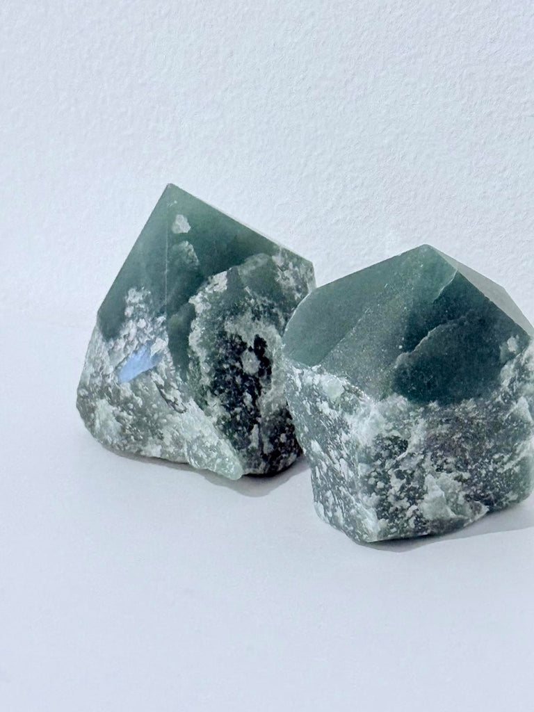A semi-polished aventuring point is a natural aventurine crystal shaped into a point with a partially raw finish. It’s often used for attracting luck, promoting confidence and supporting heart-centered energy.